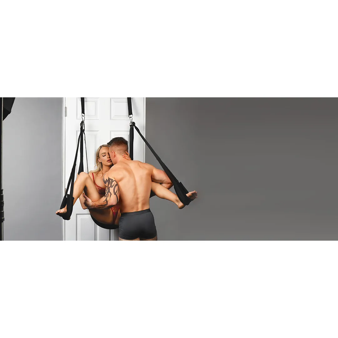 Verhoog je plezier met deze Lover's Door Swing! Deze sekssling hangt over een gesloten deur met nylon banden en blijft op zijn plaats dankzij de ABS kunststof cilinders die de deur beschermen tegen krassen en deuken. Het sterke, duurzame nylon is gevoerd met polyester kussens die de dijen en de billen ondersteunen. Twee handgrepen hangen ook aan het deurframe, zodat je jezelf kunt optrekken om je positie aan te passen en je veiliger te voelen. De swing kan tot 300 lbs ondersteunen! Zitkussens, beenkussens en handgrepen zijn allemaal verstelbaar. De banden zijn eenvoudig over een deur te haken of aan een seksswingstand te bevestigen. Vlekken kunnen indien nodig worden schoongemaakt of de banden en kussens kunnen in de wasmachine gewassen worden. Alle materialen zijn vrij van ftalaten en nikkel. Met de swing op zijn plaats over de deur helpt je partner je op te tillen. Je trekt aan de banden om ze aan te passen voor de perfecte hoek, je heupen omhoog en je benen wijd gespreid. Ze beginnen hun weg van je lippen naar tussen je dijen en knielen op een kussen terwijl ze je likken. Zodra je druipend nat bent, komen ze omhoog voor lucht en kussen je weer diep. Ze trekken je heupen naar zich toe en schuiven voorzichtig naar binnen. Je gasp in genot! De hoek is perfect en raakt die moeilijk bereikbare plek! Ze wiegen met hun heupen, duwend heen en weer, totdat je zo hard schreeuwt dat de buren het horen! Uiteindelijk convulseert je hele lichaam en stroomt er een waterval uit je. Je partner lacht, pakt een handdoek en komt terug voor meer! Afmetingen: Deurbewakingsbanden: 33 cm lengte Been kussens: 8 cm x 44,5 cm Zitkussen: 13 cm x 67,5 cm Gewichtscapaciteit: Houdt tot 136 kg Materiaal: Polyester, nylon, ABS kunststof, metaal, silicone Kleur: Zwart Opmerking: Test de stevigheid van de deur en het deurframe voordat je aan activiteit begint. Belangrijkste kenmerken: Eenvoudig op te zetten: Hang het eenvoudig over een deurframe of bevestig het aan een seksswingstand. Verstelbare banden: De zitkussens, dijkussens en handgrepen zijn allemaal verstelbaar voor een comfortabele, op maat gemaakte positie. Sterk en duurzaam: Dit duurzame nylon kan tot 136 kg gewicht aan, zodat je je veilig en zeker voelt terwijl je hangt. Gevoerd voor comfort: De banden zijn gevoerd rond het zitgedeelte en de dijen, zodat je kunt ontspannen en genieten zonder dat het nylon in je huid bijt!
