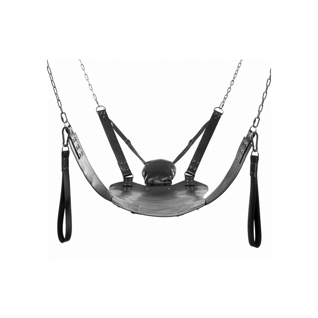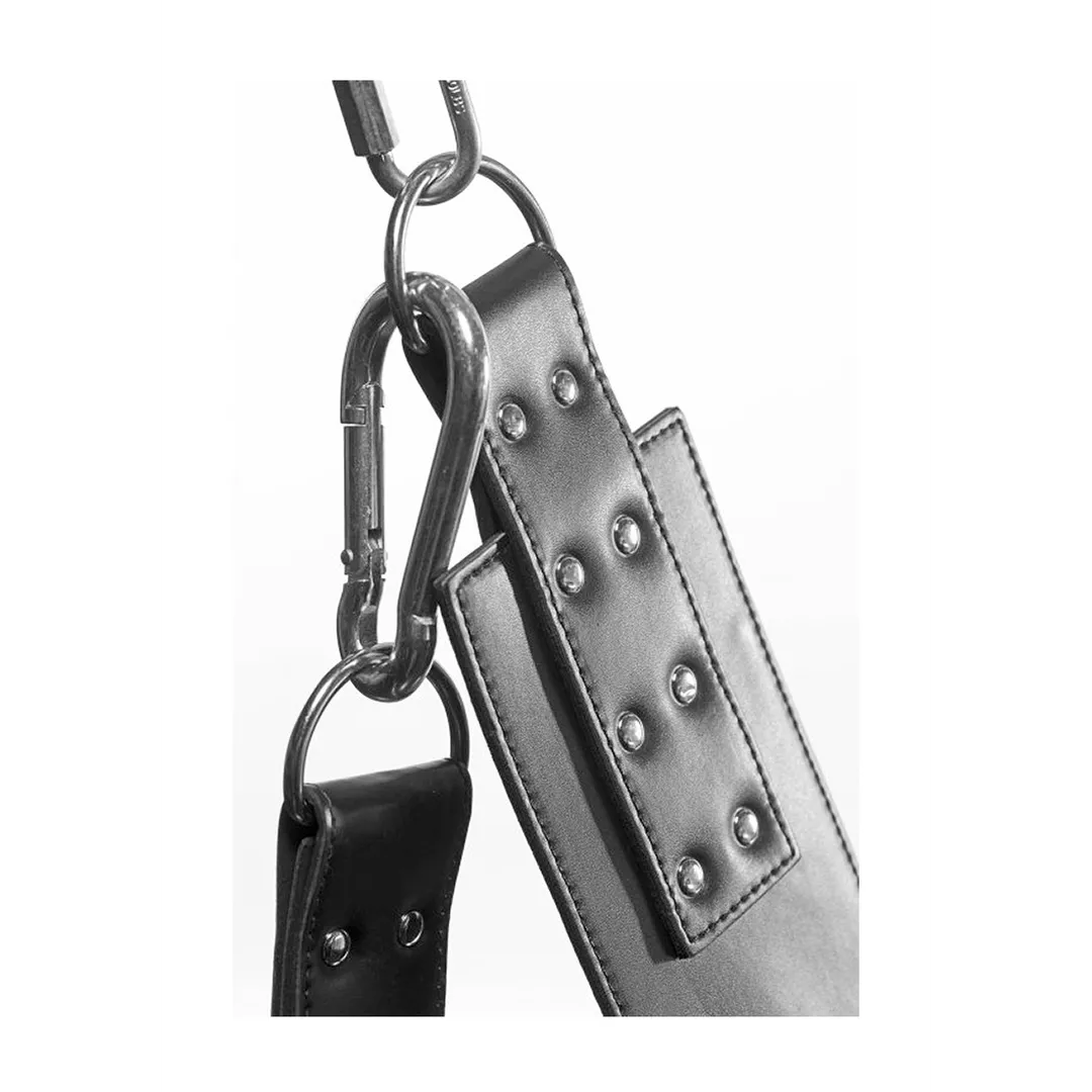 Deze prachtige bondage sling geeft je toegang tot je partner terwijl ze in de lucht hangen, opengespreid en op je wachten. Het leermateriaal is zwaar, met behoud van een prijs die toegankelijk is voor meer bondage-enthousiastelingen! Door de sling kunnen ze achterover liggen en hun voeten in de meegeleverde stijgbeugels plaatsen. Het gewatteerde kussen zal hun hoofd wiegen, met verstelbare banden aan het hoofd waarmee je hun bovenlichaam omhoog of omlaag kunt brengen. De stijgbeugels zijn afneembaar met sterke metalen karabijnhaken en het geavanceerde materiaal vermindert een deel van het gewicht voor gemakkelijker transport.