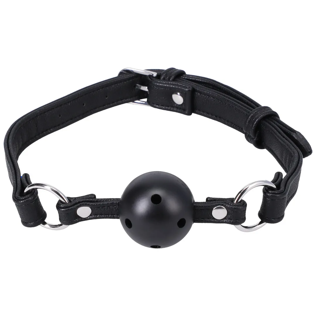 Silence is golden. Deze vegan leren Ball Gag is ontworpen om je het respect te geven dat je verdient. Bandjes van zwart vegan leer strelen jouw of het gezicht van je submissive aan beide zijden van een bal die is ontworpen om in de meeste monden te passen. De bal heeft gaten om ademhaling mogelijk te maken, en een vergrendelbare gesp zorgt ervoor dat deze niet kan worden verwijderd totdat de vrijlating is verleend. Geschikt voor zowel langdurige beoefenaars als nieuwe initiates.