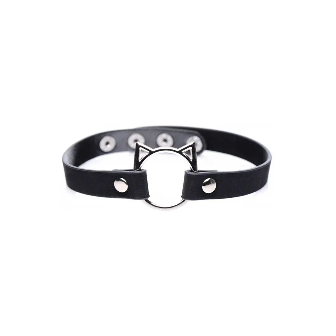 De purrrfecte choker om met katten te spelen! Deze Slim Kinky Kitty Ring Choker combineert speelsheid met katten en subtiele BDSM-elegantie voor een choker die je thuis of in het openbaar kunt dragen. Met de verstelbare drukknopen kun je gemakkelijk de perfecte pasvorm vinden, terwijl de slanke band je nek een genuanceerd katachtig tintje geeft. Het PU-leermateriaal is lichtgewicht en zacht om ongemak tijdens langdurig dragen te voorkomen, en de nikkelvrije metalen hardware is stevig genoeg voor lichte trekjes. Combineer deze Kitty Ring Choker met je favoriete set oren en leer om de ondeugende kat in je naar boven te halen!