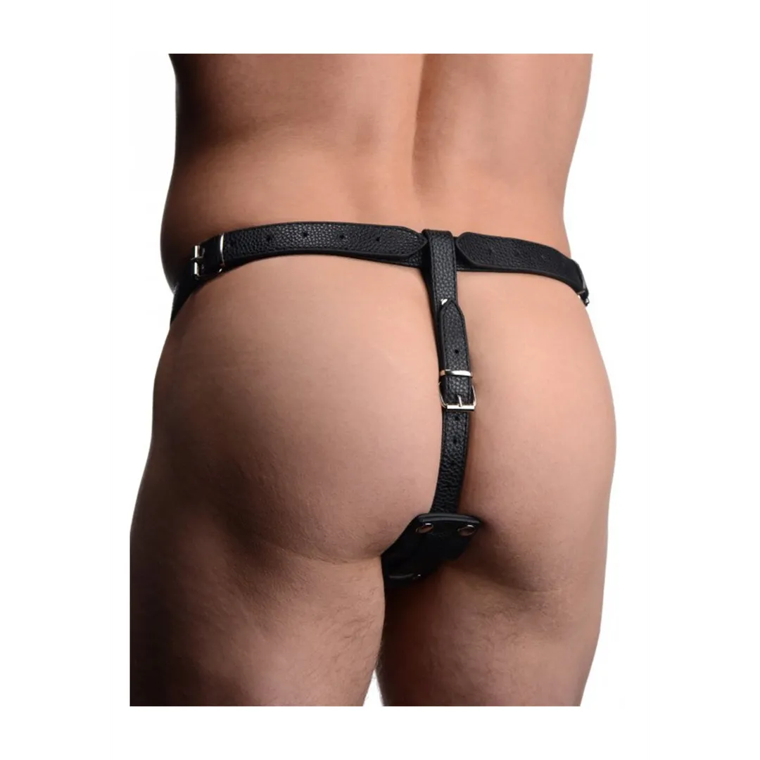 Houd je partner gevuld en klaar voor actie! Dit harnas combineert een harde, meedogenloze metalen cockring met een geribbelde siliconen buttplug. Trek de penis en het scrotum door de ring om een ??keiharde en ultragevoelige erectie te creëren. Duw de taps toelopende punt van de plug naar binnen en geniet van het plezier van uw partner terwijl de ribbels daarna naar binnen gaan. Span de banden aan zodat ze zich gevangen voelen en geniet van hun wanhoop! De plug kan ook worden verwijderd om alleen mee te spelen, met een handige zuignap. Niet compatibel met siliconen smeermiddel. Reinig met milde zeep en warm water.