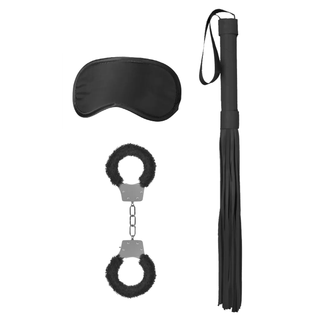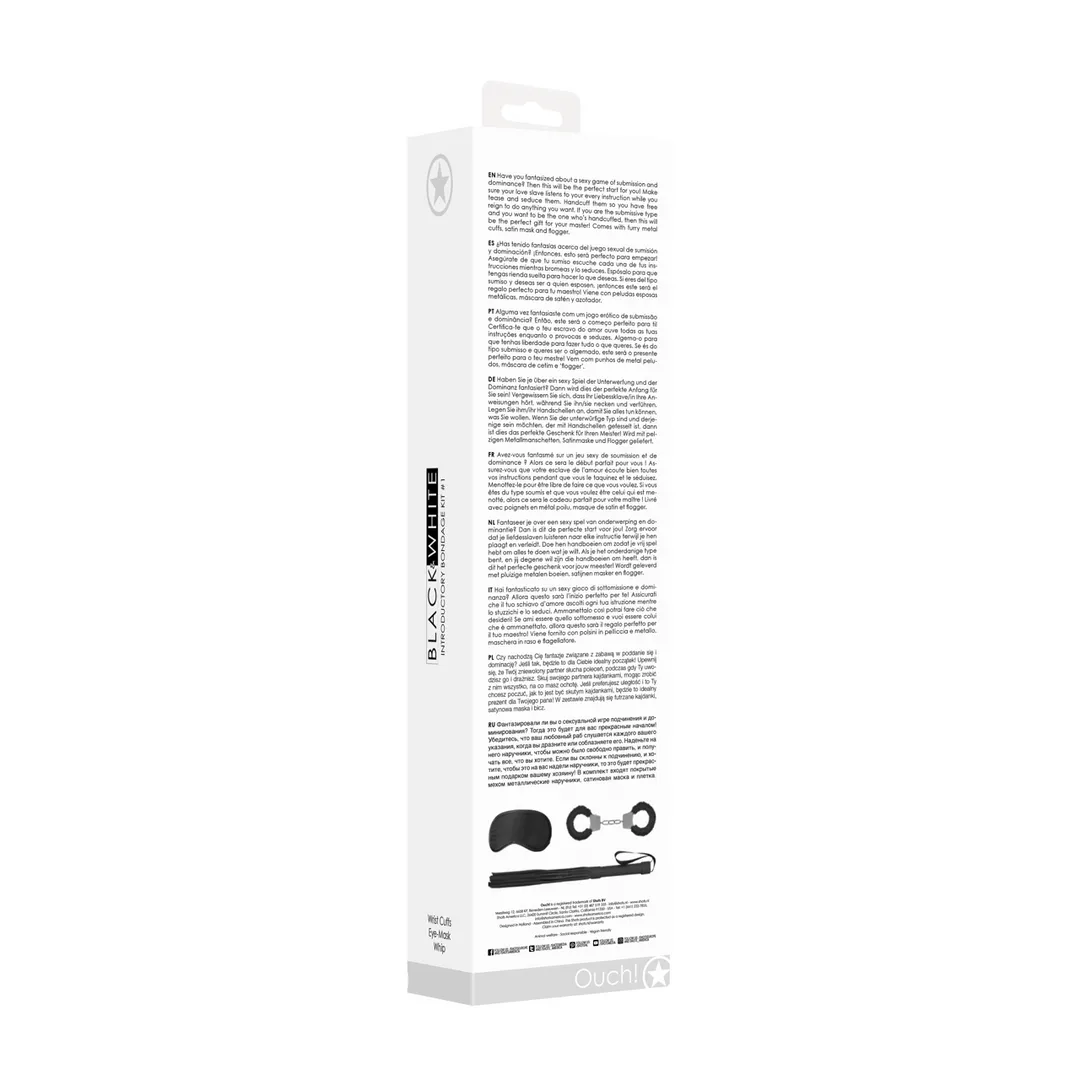 Perfect bondage kit for beginnersThe box contains everything you need for teasing your partner or more extreme roleplayThis kit is available in 4 different colors: Black, Pink, Purple and RedComes with furry metal cuffs, satin mask and flogger/