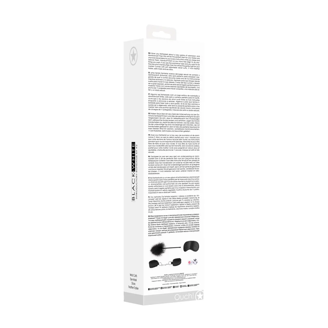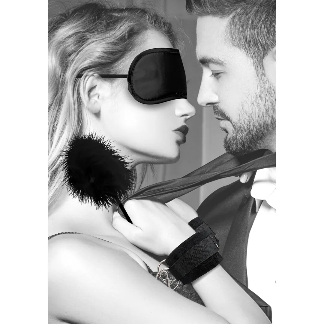 Perfect bondage kit for beginnersThe box contains everything you need for teasing your partner or more extreme roleplayThis kit is available in 4 different colors: Black, Pink, Purple and RedComes with soft adjustable velvet cuffs, 11 feather tickler, satin mask and sex dice/