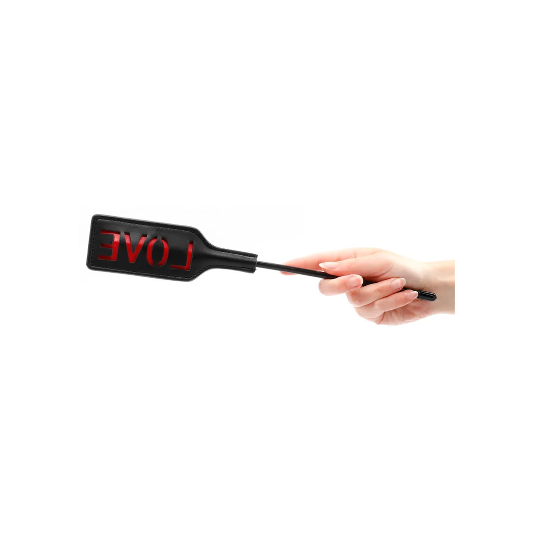 Leave a lasting impression on your partner. This short handled rectangular shaped crop is the perfect way to discipline your partner. Leave a lasting impression on your sub. The word LOVE is reversed so it will show up on their skin