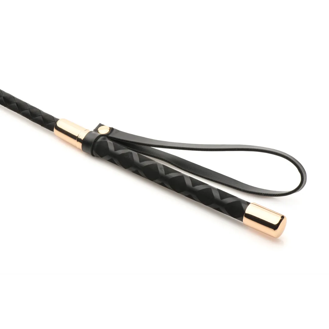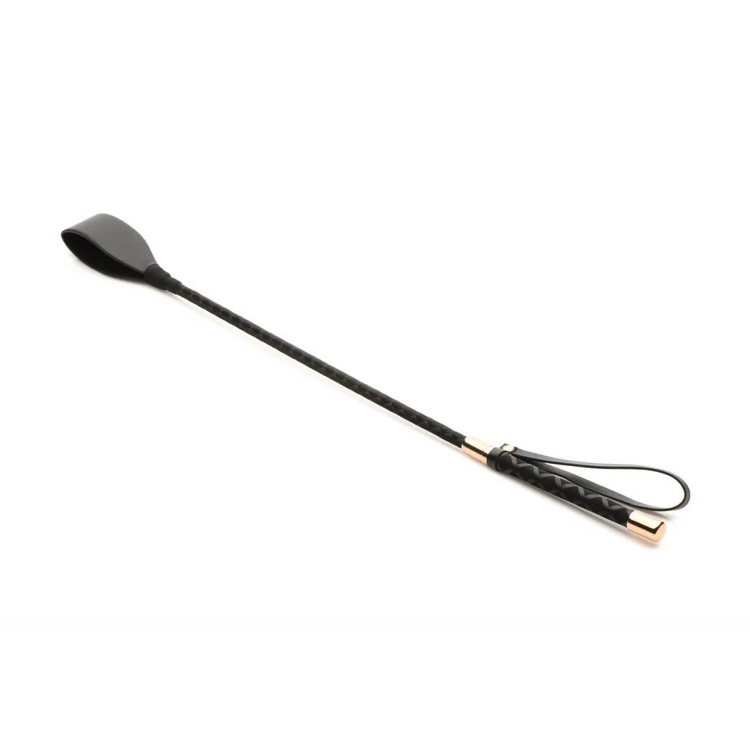 Voeg een stevige crop toe aan je collectie en heb altijd een geweldig hulpmiddel bij de hand voor spankingen en kinky spelletjes! Deze riding crop levert een scherpe en zekere beet voor wanneer je je partner wilt kussen met een vleugje heerlijke pijn. Gemaakt van veganistisch vriendelijk leer, heeft deze crop een textuur grip die je helpt om je grip te behouden terwijl je speelt. De stevige staaf in het midden is gemaakt van glasvezel die stevig is met genoeg flexibiliteit om impact te verwerken. De driehoekige punt is perfect voor precieze en specifieke impactspelletjes. Om schoon te maken, spray met een toy cleaner of een mengsel van alcohol en water. Buig ze over na wat plagen en onderhandelen. Warm hun achterste op met een paar spankingen en flogging. Wanneer ze er klaar voor zijn, begin dan ze lichtjes te tikken met de driehoekige punt van de crop. Elke impact is precies en steekt net iets. Begin harder en harder te gaan, hun huid wordt rood, totdat ze genoeg hebben gehad. Wrijf over de plekken waar je ze hebt geraakt, en ga dan weer verder wanneer ze klaar zijn voor meer!