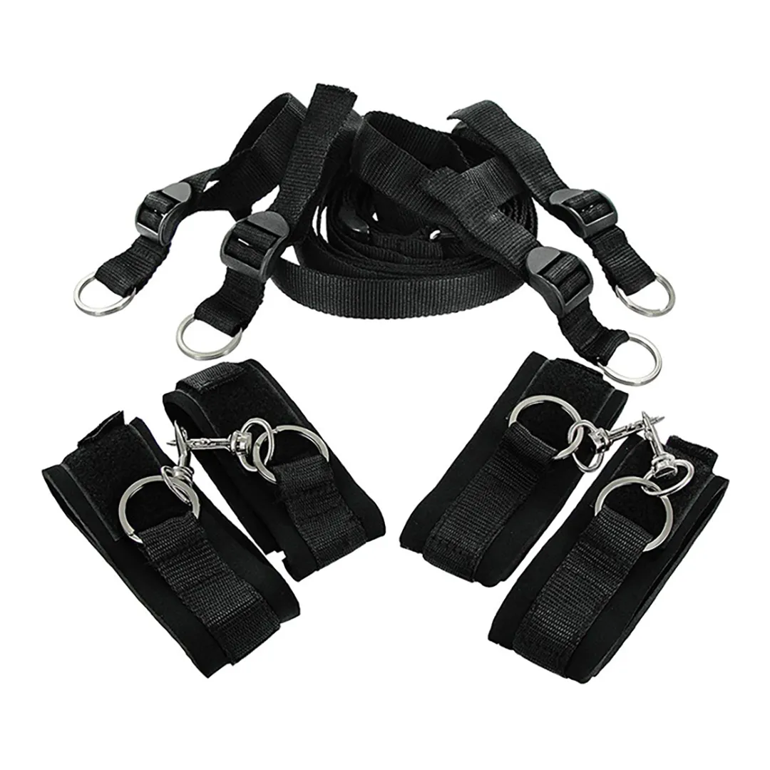 De Frisky Bedroom Restraint Kit is draagbaar en gemakkelijk te gebruiken met H-vormige banden die onder elk bed passen en om de enkels en polsen kunnen worden bevestigd om beweging te beperken. De stevige Neopreen boeien zijn zacht en comfortabel, maar sluiten veilig met zware Velcro. Draaiende clips bevestigen de boeien aan de banden onder het matras. Geniet ervan om je partner in compromitterende posities te plaatsen terwijl je hen teistert en verwent totdat je besluit dat ze worden vrijgelaten! Afmetingen: Vier restrain banden en een verbindingsband passen tot ongeveer 48 inch in lengte, boeien verstelbaar tot ongeveer 16 inch rond. Materiaal: Neopreen, Velcro, nylon en metaal. Kleur: Zwart. Opmerking: Inclusief vier boeien en H-vormige restrain band. Verstelbaar om op elk formaat matras te passen. Draagbaarheid stelt je in staat om elk bed om te toveren tot een sexy restrain Verstelbaar om op elk formaat matras te passen Kan worden geregeld om te werken met meerdere restrain posities: op de rug, op de buik, hog-tie, enz.