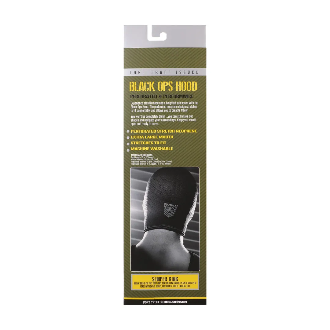 Ervaar de stealthmodus en een verhoogde subruimte met de Black Ops Hood. Het geperforeerde neopreen ontwerp rekt uit voor een comfortabele pasvorm en laat je vrij ademen. Je zult niet helemaal blind zijn... je kunt nog steeds vormen onderscheiden en je omgeving navigeren. Houd je mond open en klaar om te dienen.
