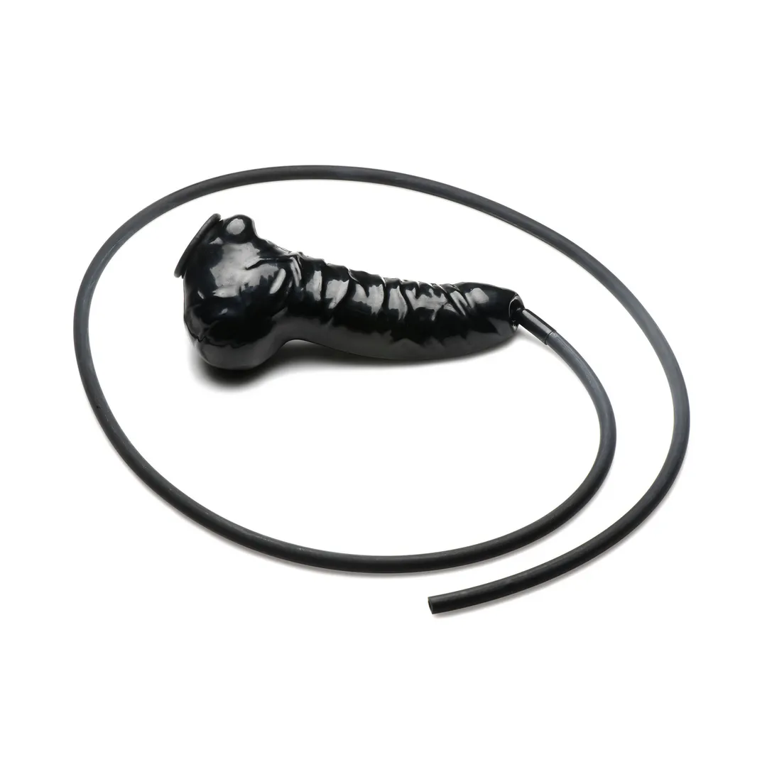 Geniet van zowel latex als watersport met deze Realistic Penis Sheath and Tube! Rek de latex hoes over je schacht en ballen om het veilig op zijn plaats te houden en ervoor te zorgen dat al die druppels en morsen langs de slang lopen in plaats van over je dijen. De textuur van de hoes is ontworpen om realistisch te zijn, zodat jij en je partner kunnen genieten van het uiterlijk en gevoel van je zwarte latex staaf! Aan het einde van de hoes zit een 4 voet lange siliconen slang. Geniet van het legen van je blaas en laat de warme vloeistof langs de slang lopen in of op wat je maar wilt. Speel alleen of met een partner je hebt veel ruimte om het plezier uit te breiden! Gebruik wat glijmiddel op je schacht en de latex en rek het dan over je staaf en zet het op zijn plaats. Controleer eenmaal op zijn plaats of de slang veilig is, en geniet dan! Leg handdoeken neer, zet bekers of potten klaar om vloeistoffen van de slang op te vangen, gebruik een waterdichte hoes of gebruik de douche of het bad om nat en wild te worden! Gebruik de slang om de vloeistof over jezelf te gieten of richt het op je favoriete partner die van watersport houdt! Om na gebruik schoon te maken, spoel met warm water en milde zeep, gebruik dan een speelgoedreiniger en dep droog. Afmetingen: Lengte van de penis hoes (niet uitgerekt): 7 inch. Breedte van de penis hoes (niet uitgerekt): 1.5 inch. Lengte van de slang: 48 inch. Materialen: Hoes: Latex Slang: Siliconen Kleur: Zwart Opmerking: Gebruik niet met petroleum gebaseerde producten. Gebruik alleen op water gebaseerde glijmiddelen. Belangrijkste kenmerken: Rekbaar en Duurzaam: Deze latex penis hoes rekt om snug om je schacht en ballen te passen en is duurzaam zodat je veel plezier kunt hebben! Realistische Textuur: De vorm van de hoes is ontworpen om op een echte penis te lijken, zodat jij en je partner kunnen genieten van het uiterlijk, gevoel en textuur! Lange Slang: Deze lange, siliconen slang is 4 voet lang, zodat je het spel op creatieve manieren kunt uitbreiden! Perfect voor Watersport: Met alles veilig op zijn plaats en contained, maken de hoes en slang watersport zo veel leuker!