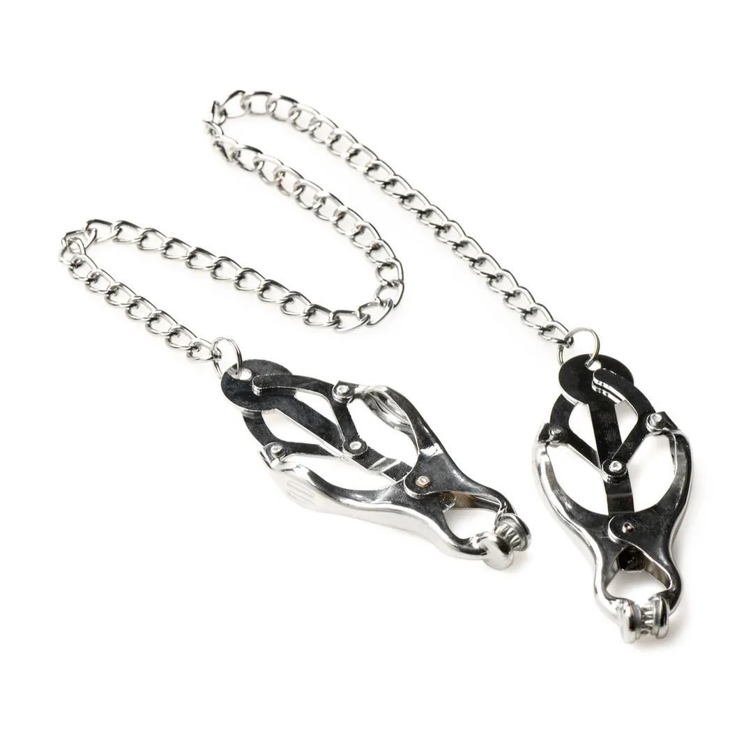 Intense Pressure: These clover clamps are known to have a firm grip and stay on longer than most!Spiked Metal Tips: The spiked, metal tips add intense pressure, pain, and sensual stimulation!14.75 Inch Chain: The chain keeps them together at all times and also adds extra pressure to the clamps when pulled.Nickel-Free Metal: All metal is nickel-free and body-safe for those with sensitive skin./