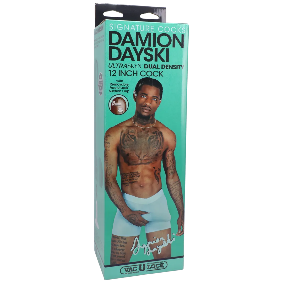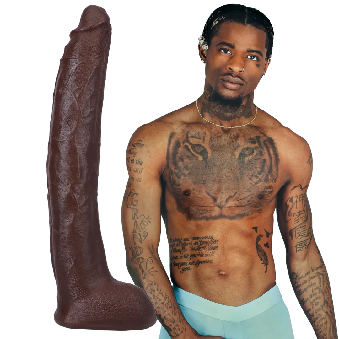 Damion Dayski wil dat je alle 12 inches binnenkrijgt! Zijn voetlange Signature Cock is rechtstreeks van zijn lichaam gemodelleerd in levensechte dual density ULTRASKYN. Dit materiaal legt elk detail perfect vast, imiteert het unieke gevoel van echte huid en warmt op tot lichaamstemperatuur bij gebruik. Laat je pornoster fantasie vanavond werkelijkheid worden!