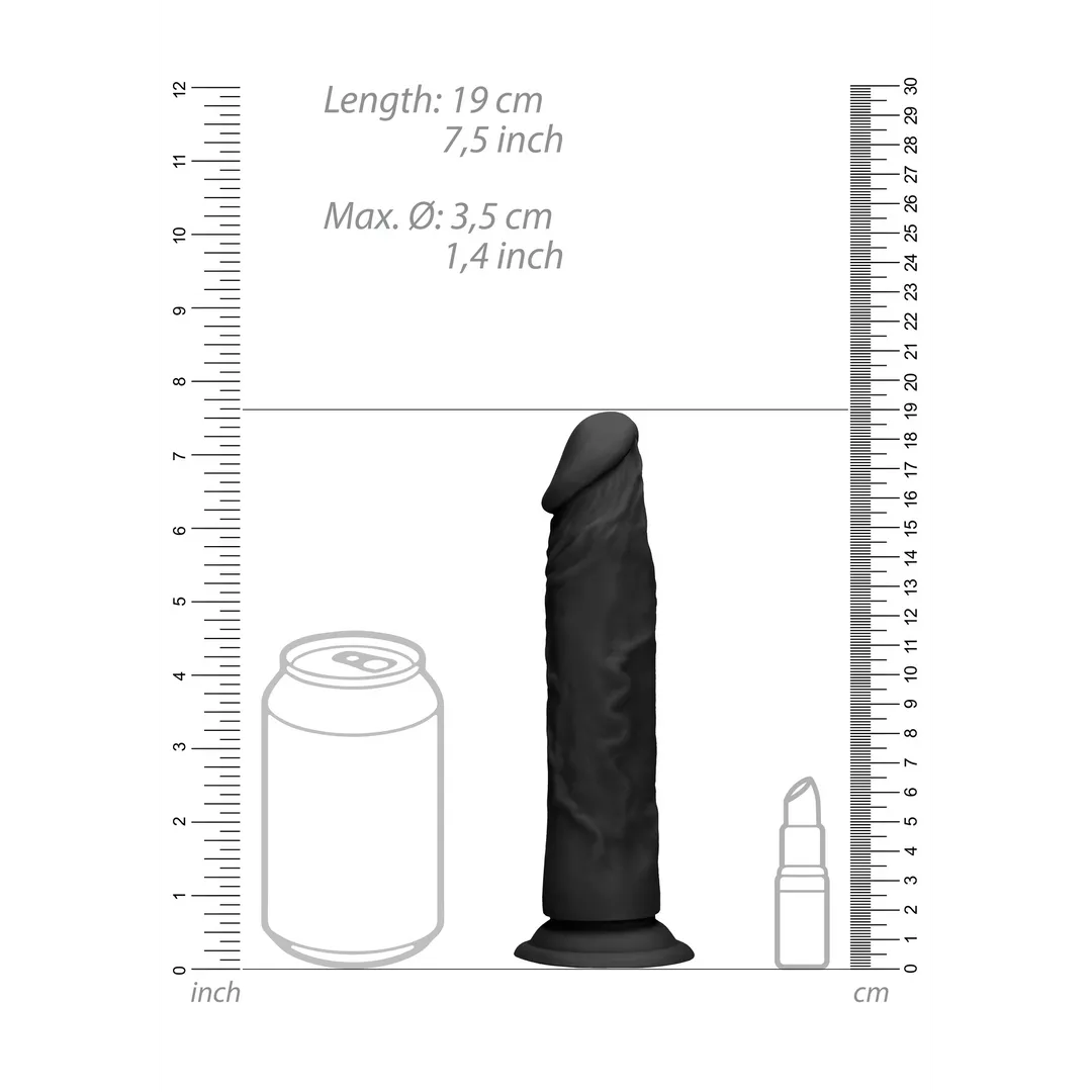 Wordt geleverd met een ultrasterke zuignapZorgt ervoor dat het fluweel zacht aanvoeltGemaakt met een speciale RealRock-skinDeze dildo heeft een zeer realistische look en feelDe zuignap maakt het ook beschikbaar voor harnasgebruik/