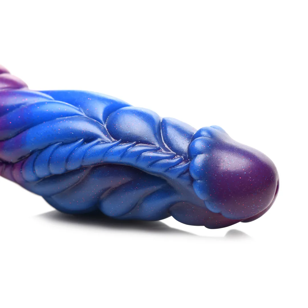 Stel je een fantasieliefhebber voor met een kosmische penis. De briljante en rijke blauwe, paarse en roze kleuren springen eruit tegen de duisternis van de nacht. Kijk dichterbij en je ziet de glitters die een sterrenhemel nabootsen. De ronde, phallische kop is gemakkelijk in te brengen. Terwijl je het erin schuift, geniet je van de grote bobbels, de geribbelde lijnen en de dikke rand langs het midden. De talrijke texturen zorgen voor opwindende stimulatie terwijl de omtrek en grootte je openen om je genotszintuigen te vergroten! Gemaakt van premium, ftalaatvrij silicone, is het lichaamsveilig en het beste te gebruiken met op water gebaseerde glijmiddelen. Stevig maar flexibel, het heeft een stevige kern en een zachte buitenlaag die zich aanpast aan de rondingen van je lichaam. De zuignapbasis kan op elk vlak oppervlak worden geplaatst voor een handsfree oceaanverkenning. Combineer het met een strap-on harnas voor koppels fantasierolspel. Gebruik het in kinky cosplay en combineer het met een outfit of kostuum! Na gebruik, was het met warm water en milde zeep, spray het dan met een speelgoedreiniger en veeg het droog. Houd het uit direct zonlicht. Bewaar het op een koele, donkere plaats. Terwijl je terugloopt van een laat avondevenement, is de nacht stil en donker. Je voelt een koele bries tegen je huid en het kust de achterkant van je nek. Terwijl je loopt, hoor je alleen je eigen voetstappen en begin je je af te vragen of er nog iemand anders buiten is. Je pauzeert om naar de lucht te kijken. De maan is verborgen en je kunt de sterren helder boven je zien branden. Plotseling lijkt het alsof de stille nacht stiller wordt. Alsof de lucht uit de ruimte om je heen is gezogen, is er geen enkel geluid te horen behalve je eigen ademhaling, je eigen hartslag. Dan verblindt een licht je en wanneer je de volgende keer knippert, ben je binnen in een metalen schip. De muren glinsteren met hologrammen en licht. Je voelt het koele, harde metaal op je huid en ziet dat je op een tafel ligt die golft als water terwijl je wringt en probeert los te komen. Helaas zijn je polsen en enkels vastgebonden. Je hart slaat sneller. Wat is deze plek? Dan hoor je een geluid, en terwijl je naar rechts kijkt, glijdt een humanoïde wezen de kamer binnen. Terwijl het dichterbij komt, voel je de warmte die van zijn lichaam afkomt en hoor je een gezoem. Zijn lichaam lijkt te glinsteren en je ziet dat er kleine sterren in zijn huid bewegen. De diepe paarse en blauwe tinten zijn gemengd met een heldere roze kleur. Dan kijk je omlaag en zijn alienhanden zijn op je, een dikke en pulserende schacht verschijnt tussen je benen, en voor je het weet is deze alienontvoering veranderd in een volledig lichaamsexamen met doordringend genot waar je niet aan kunt ontsnappen! Afmetingen: Totale lengte: 23 cm. Inbrengbare lengte: 19 cm. Smalste inbrengbare diameter: 4,5 cm. Breedste inbrengbare diameter: 5,8 cm. Materialen: Silicone Kleur: Paars, Blauw, Roze Belangrijkste Kenmerken: Creature Cocks Dildo: Deze briljante paarse, roze en blauwe dildo is rijk aan kleur en karakter. Met dikke ribbels en grote bobbels heeft het rondingen en textuur die sensationeel aanvoelen zodra het binnenin is! De ronde kop is gemakkelijk in te brengen, maar dan kun je de golven van deze kosmische penis helemaal naar de stekelige en geribbelde basis berijden. Premium Silicone: Met een stevige, flexibele kern en zachte, squishy buitenkant, is dit ftalaatvrije en lichaamsveilige premium silicone het beste te gebruiken met op water gebaseerde glijmiddelen om je het genot te geven dat je wenst! Zuignapbasis: Ga handsfree door de basis op elk vlak oppervlak te drukken en erop te rijden! Harnas Compatibel: Combineer met een compatibel harnas en ring zodat jij of je partner deze fantasiedong kunnen dragen!