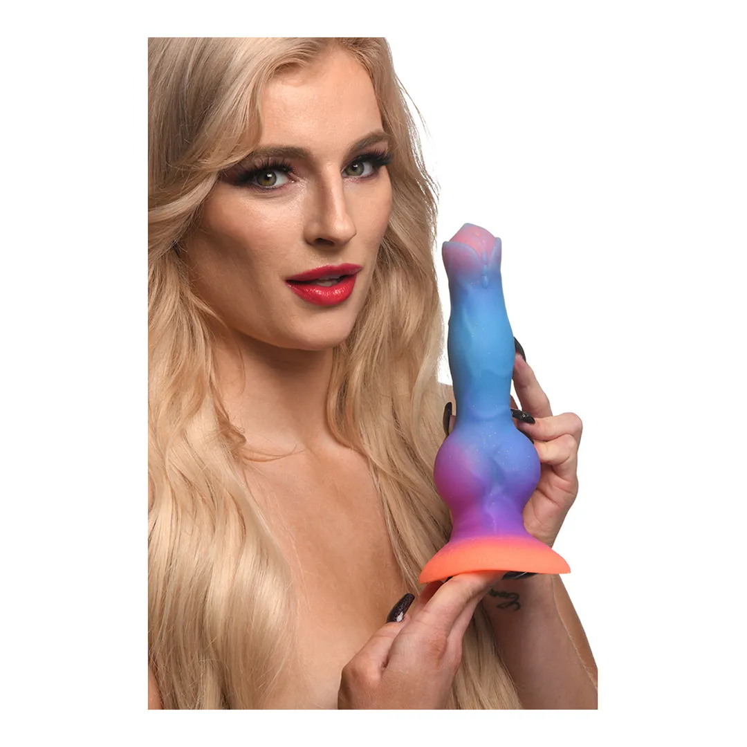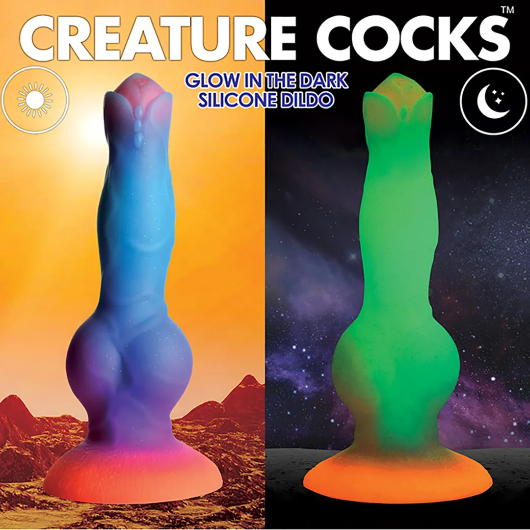 Neem je fantasierolspel, kinky cosplay of creatief rollenspel verder met tastbare fantasiespeeltjes van Creature Cocks! Deze Glow-In-The-Dark Alien Dildo is misschien wel de perfecte ruimtehond voor je zondige genoegens! Met een opbollende knoop aan de basis, zichtbare aderen langs de schacht en een voorhuid met driedubbele kralen langs de rand, is het ook intens kleurrijk! De psychedelische kleuren beginnen met de zonnestraal van roodachtig oranje aan de basis en gaan verder in paars en blauw langs de schacht! In de siliconen mal is glitters ingebed die nog meer kosmisch schitteren wanneer de dildo wordt blootgesteld aan zonlicht of UV-licht, zodat het oplicht! De brede basis biedt krachtige zuiging, zodat je handsfree kunt gaan door het op een vlakke ondergrond te plaatsen om het op zijn plaats te houden. Je kunt het ook combineren met een compatibele strap-on harnas voor pegging spel! Gemaakt van premium, ftalaatvrije silicone, heeft het een stevige kern en een zachte, zijdezachte oppervlakte. Gebruik alleen met op water gebaseerde glijmiddelen voor de beste resultaten. Na het spelen, was de dildo met warm water en zeep en gebruik een speelgoedreiniger om schoon te spuiten. Veeg droog en bewaar op een koele, donkere plaats uit direct zonlicht. De geluiden van gehuil vullen je geest, maar je kunt ze niet buiten horen. Je kijkt om je heen, maar niets anders lijkt het op te merken of te bewegen na het lange, treurige gehuil. Was het echt in je hoofd? Dan hoor je een gegrom dat zo dichtbij lijkt alsof een beest aan je nek zit! De kosmische wolf staat aan de andere kant van de kamer, zijn ogen gloeien en zijn sterren zijn gevuld, zijn tong hangt uit terwijl hij hijgt. Zijn kwijl verandert in groene ectoplasma wanneer het de grond raakt. Hij loopt naar je toe en je hoort opnieuw het gegrom, maar in je geest, en je realiseert je dat deze kleurrijke, sterrenwolf telepathie gebruikt om alleen met jou te communiceren! Terwijl hij op je springt, voel je de harde, natte schacht tegen je dijen! Hij is klaar om je te nemen! Voor je het weet, ben je bereden en gepenetreerd, gefokt door een beest van het universum! Afmetingen: Totale lengte: 21,5 cm. Invoerlengte: 19 cm. Smalste invoerdiameter: 3,8 cm. Breedste invoerdiameter: 6,6 cm. Materialen: Silicone Kleur: Oranje, Paars, Blauw Opmerking: Gebruik alleen met op water gebaseerde glijmiddelen. Belangrijkste kenmerken: Fantasie Dildo: Deze kleurrijke alien dildo heeft een zonnestraal basis van oranje en rood en een schacht van paars en blauw met glitters ingebed in de siliconen mal! Twee ballen bollen als een hondenknoop boven de basis, grote aderen steken uit langs de schacht, en de kop heeft een voorhuid met driedubbele kralen aan de zijkant. Zuigcup Basis: Geniet van de brede, zuigcup basis van deze dildo. Druk eenvoudig stevig op een vlakke ondergrond en geniet van het rijden zonder handen! Harnas Compatibel: De brede, flensbasis is compatibel met de meeste strap-on harnassen, zodat je het kunt dragen en het fantasierolspelpersonage kunt spelen dat je bedenkt! Glow-In-The-Dark Silicone: Gemaakt van lichaamsveilige, ftalaatvrije, premium silicone, zal het ook oplichten in het donker nadat het is blootgesteld aan UV-licht of zonlicht.