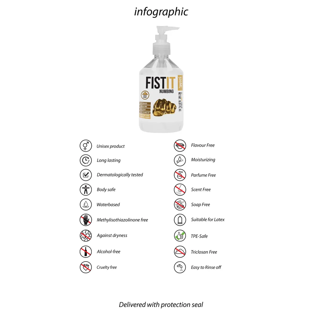 Fist It Professional is een glijmiddel op waterbasis. Geschikt voor gebruik met latex-condooms. Dermatologisch getest, vetvrij, kleurloos, geurloos en neutraal van smaak.Smeer zoveel gel als je wilt op het gewenste lichaamsdeel en herhaal zo vaak je wilt. Buiten het bereik van kleine kinderen bewaren. Koel en donker bewaren.