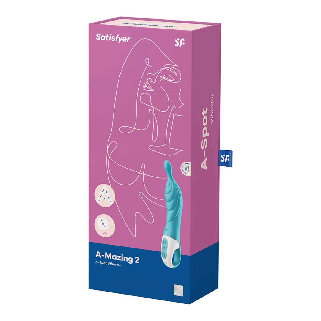 Verbaas jezelf vandaag! De A-Mazing 2 biedt een lange schacht, ideaal voor diepe en onontgonnen A-spot stimulatie. De A-spot bevindt zich ongeveer 2 inch boven de G-spot, langs de voorste vaginale wand. Je zult het vinden wanneer je de A-Mazing vastpakt met behulp van de kenmerkende handgreep van Vibes, voor betere grip en comfortabeler vasthouden. De rechte schacht met gegroefde textuur voegt extra stimulatie toe voor iedereen die dingen op wil fleuren! Met een stijve as, kleine en afgeronde flexibele punt en twee krachtige motoren, verken 12 verschillende vibratieprogramma's via het gemakkelijk te navigeren bedieningspaneel. De A-Mazing 2 is gemaakt van lichaamsveilige siliconen, oplaadbaar en waterdicht (IPX7). Ervaar geestverruimend plezier met de A-Mazing!