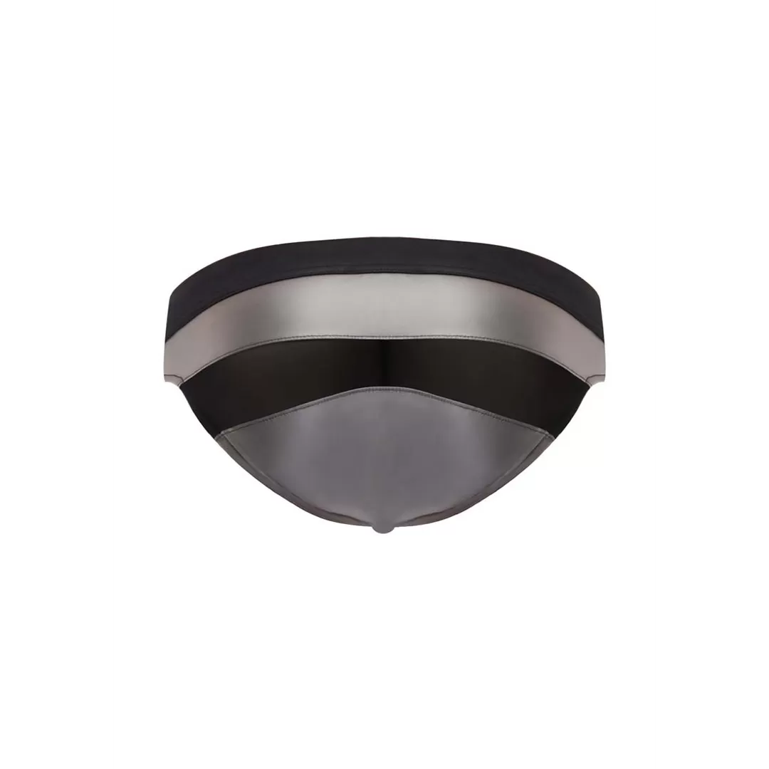 Iron Clad Bikini features a mesh pouch with front inserts and a mesh insert through the rear. Low cut waist, full rear coverage. Color coordinating, fabric coated essential waistband. Ultra thin, and flexible, high tech fabric with rubber-like qualities. Cool, breathable mesh inserts. Subtle textured pattern with smooth finish.