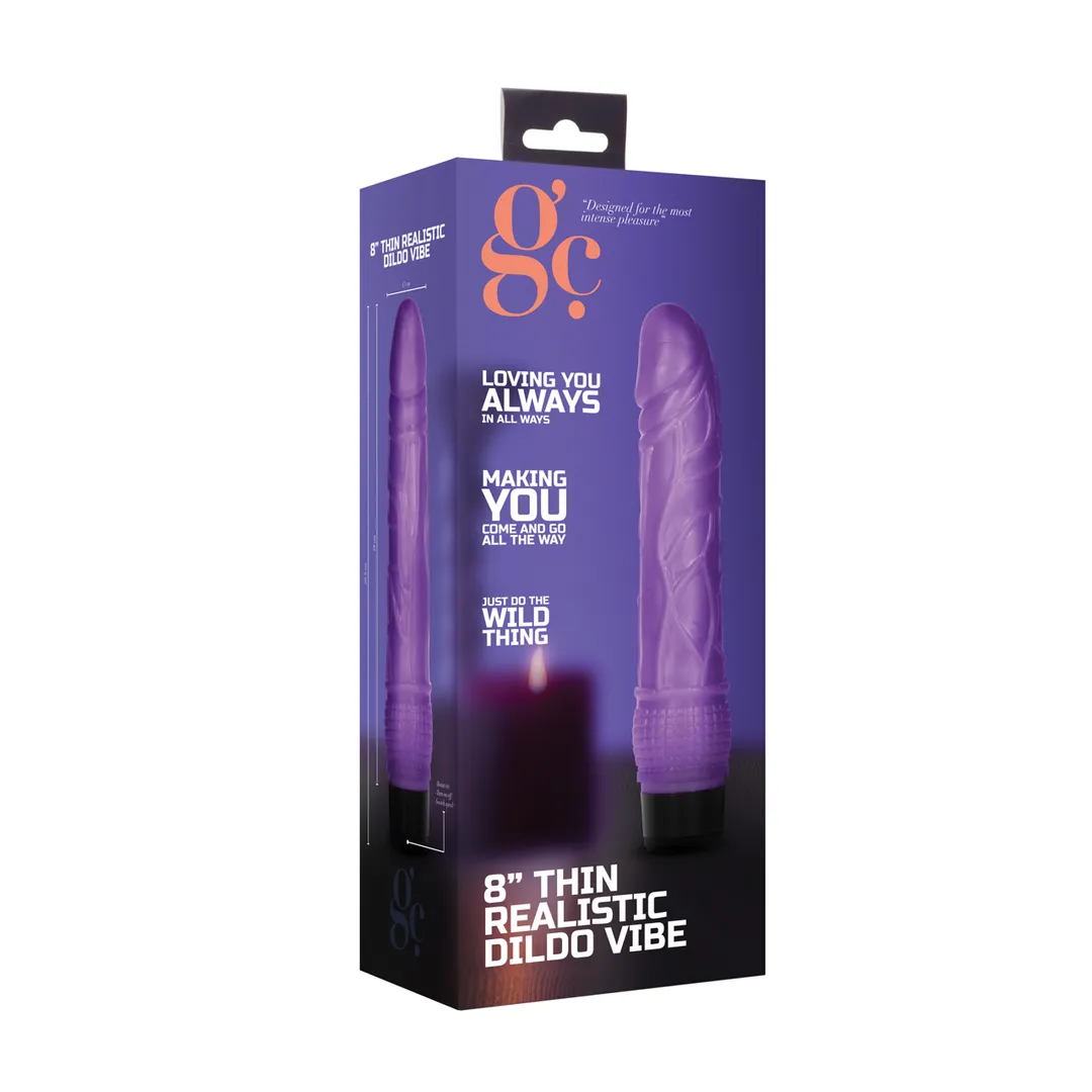 Hoe diep gaat uw liefde? Met deze superrealistische dildo-vibrator gaat u dieper dan diep, dankzij de indrukwekkende penetratie lengte van 18 cm. Gemaakt uit thermoplastisch rubber (TPE), raakt dit lange speeltje altijd de juiste plekjes. De GC 8 THIN REALISTIC DILDO VIBE heeft een indrukwekkend toerental van 11.000 RPM en met zijn makkelijke draaibare bediening aan de voet, bevindt u zich binnen de kortste keren in het orgasmewalhalla.