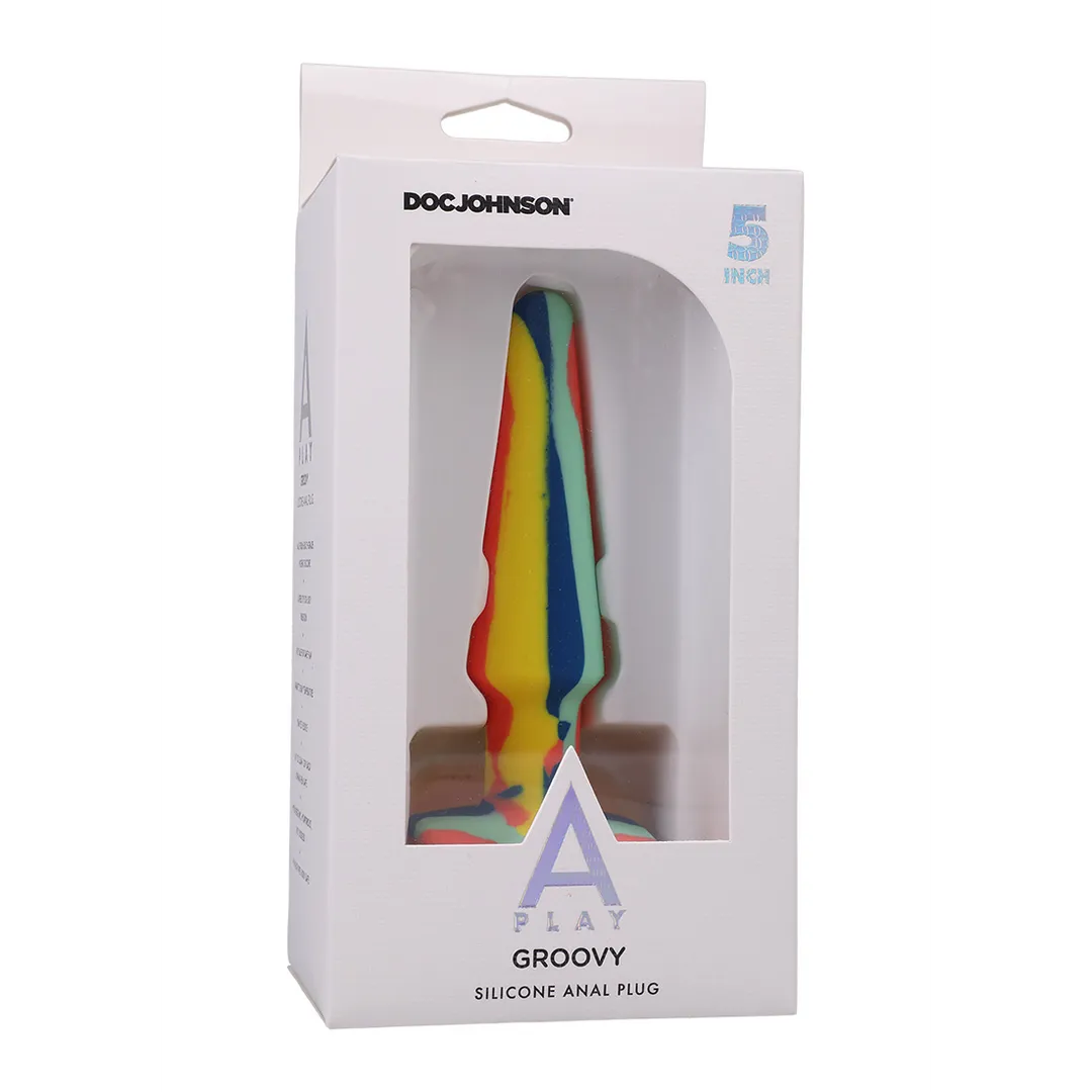 De A-Play Groovy is een zachte, meerkleurige anale plug gemaakt van gezondheidsgrade siliconen. De taps toelopende punt en brede basis zorgen voor veilige, comfortabele speelervaring, en het stevige maar flexibele gevoel maakt een beetje wiebelen mogelijk. Elke plug is uniek en heeft zijn eigen variatie van het kleurpatroon.
