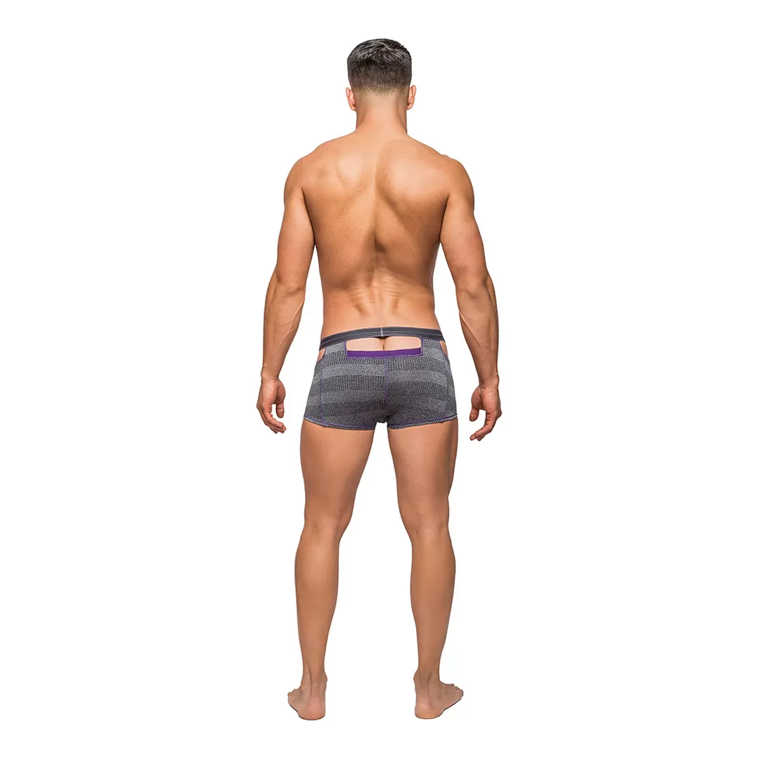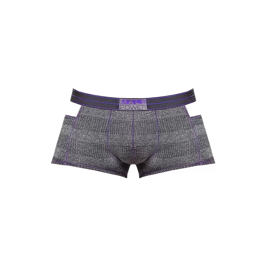 From the Heather Haze collection by Male Power, this style includes: A mini short with cutout windows on the hips and rear, a plush bright elastic, decorative stitching accent, and a sporty plush branded waistband.