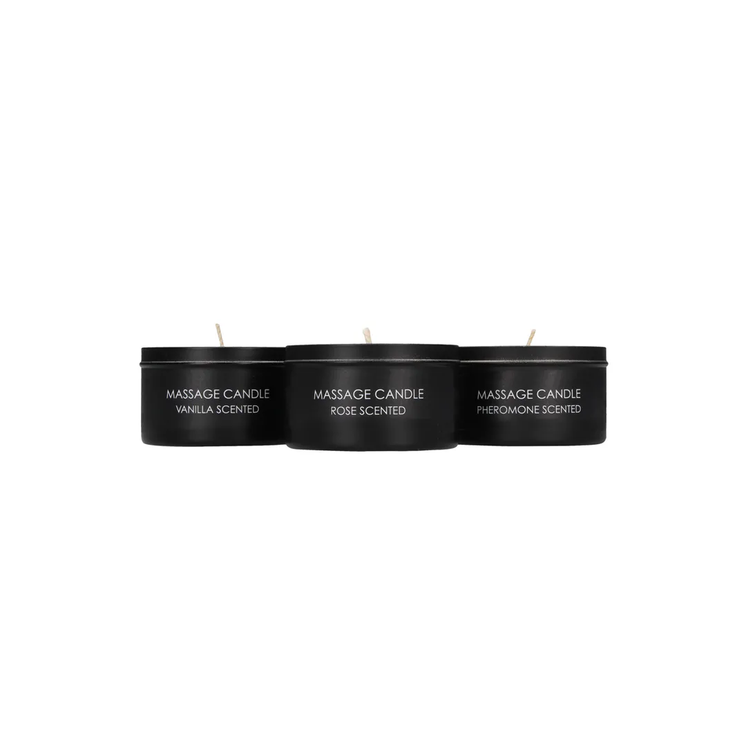 Steek gewoon een kaars aan om een sensuele sfeer te creëren en masseer je partner vervolgens naar het paradijs! Terwijl de sensuele geur de kamer vult, zal de warme was zijn magie op de huid van je geliefde uitoefenen. Deze driedubbele kaarsenset is het complete pakket om het voorspel te laten overgaan in het seksspel! Dankzij de 3 sensuele geuren met feromoon, vanille en roos, zal uw geliefde de verrassing van zijn/haar leven krijgen! De 3 kaarsen worden geleverd in een zwart kopje en wegen 60 gram (2,12oz) per stuk.