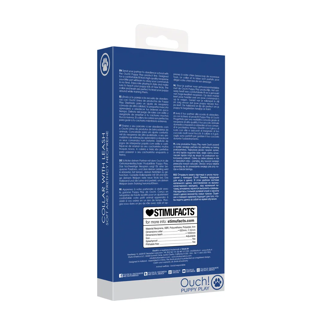 Enjoy role playing in style and make sure to teach your puppy lots of new tricks.Send your partner to obedience school with the Ouch! Puppy Play product line.Designed for a comfortable fit from high-quality neopreneThe collar and leash are perfect to lead your puppy around while training them./
