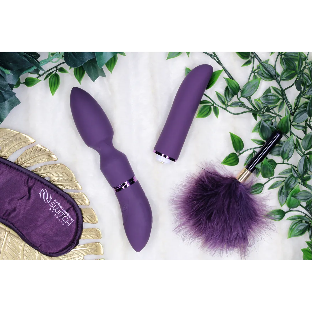 Create your perfect combination with this luxury kitThe kit contains a clitoral wand base and two interchangeable top attachments: a Clitoral Vibrator and a Classic Vibrator.Including a free feather tickler and a free satin maskMade from medical grade silky-smooth silicone and ABS.Waterproof and Phthalate free/