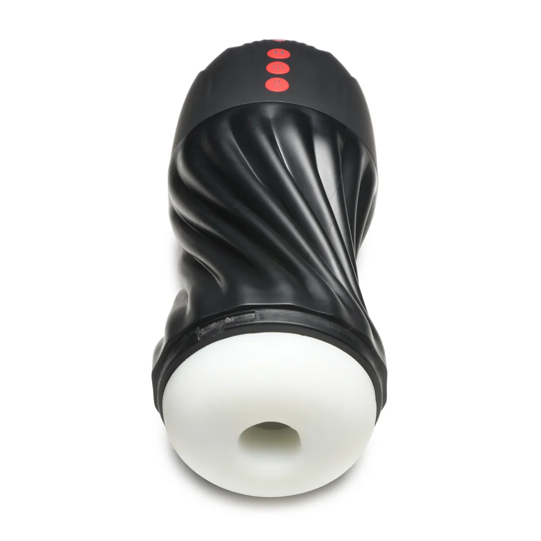 Combineer je eigen grip en druk met dit zuigende en vibrerende masturbatietoestel! Dompel je lid onder in het superzachte en rekbare TPE en knijp vervolgens in de zijkanten van de behuizing om je eigen druk toe te voegen met je sterke grip. Het TPE is ftalaatvrij en lichaamsveilig, zodat je diep kunt genieten van de sensaties, zonder zorgen! Versterk je ervaring met 5 automatische zuigmodi en 7 vibratiemodi die elk deel van je schacht stimuleren en verzadigen! Geef er een persoonlijke touch aan met de handmatige zuigknop, zodat je kunt regelen hoeveel zuiging je op elk moment krijgt! Ontworpen om eenvoudig te gebruiken, is het ook gemakkelijk schoon te maken! Verwijder gewoon de behuizing en de hoes, was met warm water en milde zeep, en laat het aan de lucht drogen voordat je het opbergt. Laad op met de magnetische USB-oplader. Gebruik alleen met op water gebaseerde glijmiddelen voor de beste resultaten. Knijp wat glijmiddel in de hoes en schuif je lid erin. Terwijl je begint te stoten, zet je de knoppen aan om nog meer opgewonden te raken! De intense zuigmodi trekken je schacht naar binnen terwijl de vibratie het volledig laat trillen, zodat je het zelfs in je ballen kunt voelen! Je verstrakt je grip en voelt de druk toenemen, net als bij het gebruik van je hand, maar met de kracht van zuiging en vibratie erbij! Je neemt de tijd totdat je jezelf tot het uiterste hebt gebracht en dan leeg je je ballen in de hoes. Geen probleem, je haalt gewoon de hoes eruit en spoelt het af, zodat het klaar is voor de volgende keer! Afmetingen: Lengte behuizing: 23,3 cm, breedte: 9,1 cm. Invoerlengte: 14 cm. Openingdiameter: 2 cm (niet uitgerekt). Materialen: Masturbator: TPE Behuizing: ABS-kunststof, silicone. Opmerking: Gebruik alleen met op water gebaseerde glijmiddelen.