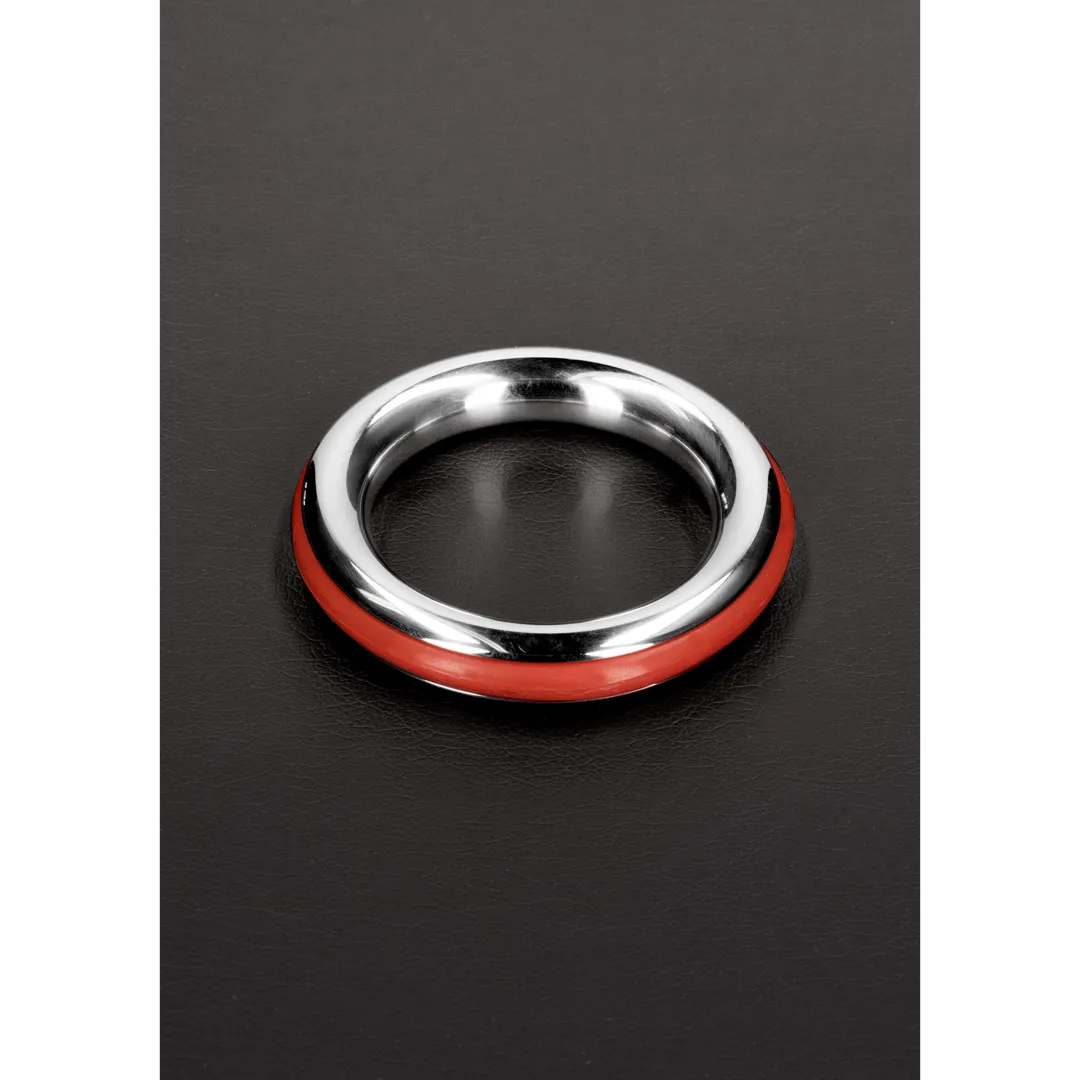 Made from Stainless Steel, this cockring is designed with comfort and style in mind The Cockring has Inlay Silicon Rubber Rings. In the colors: Red, Black, Blue and Yellow. This ring will help prolong your erection and add some flare at the same time.