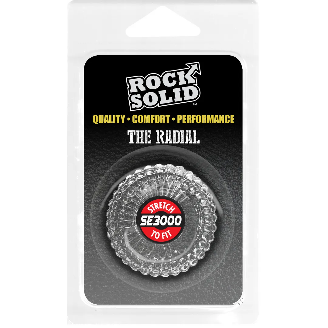 Ontworpen als een hoogwaardige autoband, biedt de complexe textuur van The Radial ultiem genot voor je partner. Dit TPE-materiaal zorgt voor een lichte rek om het op de juiste plek te plaatsen. Rock Solid cockringen vergroten de grootte en dikte voor langdurigere, hardere erecties en zijn volledig veilig voor het lichaam.