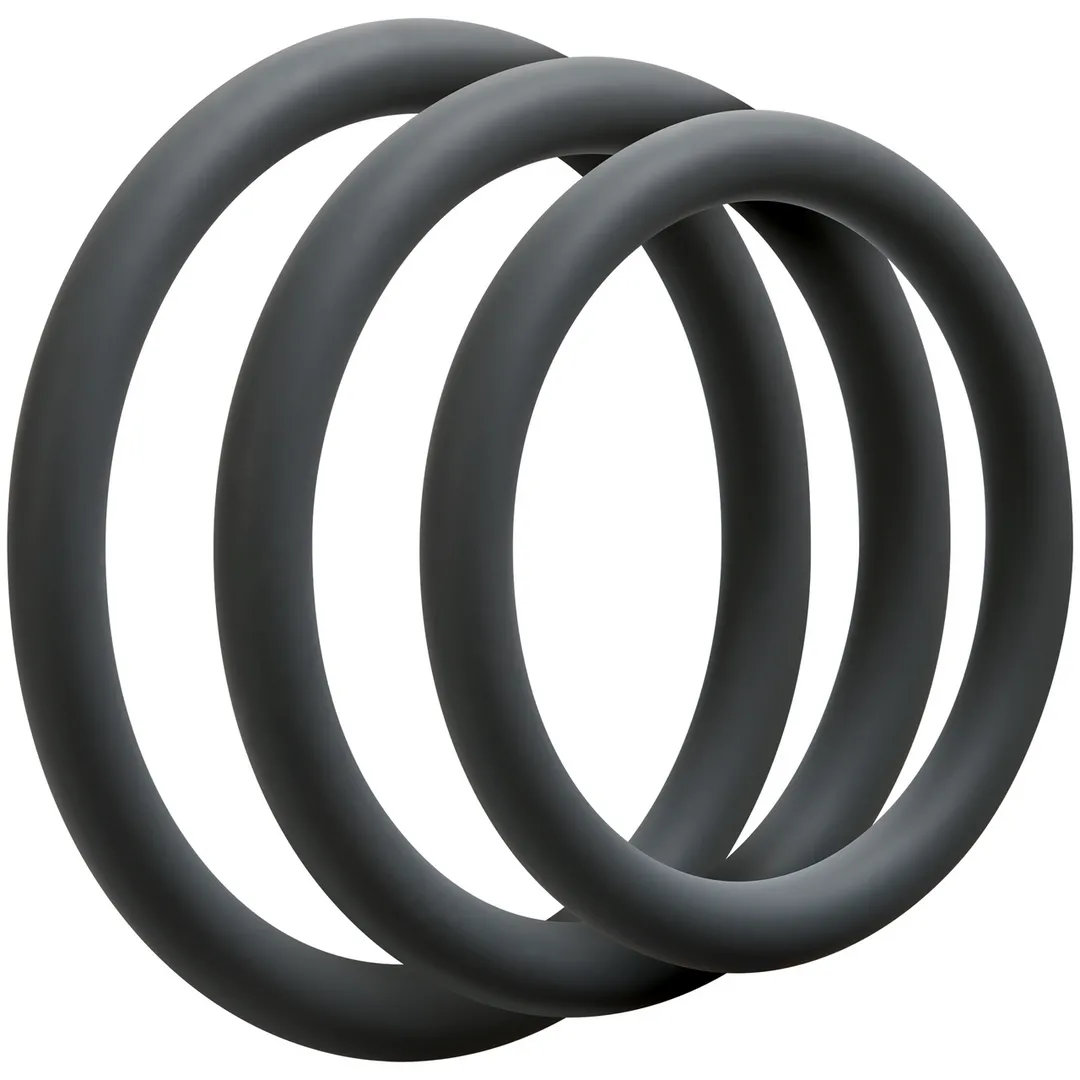 Optimaliseer je ervaring met deze siliconen penisringen! De OptiMALE Thin C-Ring Set biedt verbeterde maat en omtrek met drie ringen in 40 mm, 45 mm en 50 mm diameters. Deze ringen zijn ultra-rekbaar voor gemakkelijk gebruik rond de schacht of testikels, het behouden van die langdurige erecties waar je altijd van hebt gedroomd en het verlengen van je ejaculatie. Verkrijgbaar in zwart en leisteen ftalaatvrije siliconen.