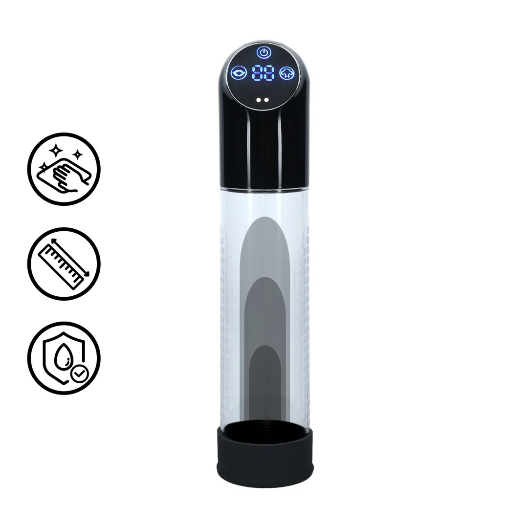 This high-quality waterproof pump offers you ample possibilities to grow in both directions! The insertion sleeve is made of smooth silicone, ensuring a comfortable experience. Surprise yourself each time with how big you can get! At the touch of a button, the extremely powerful pump creates a super-strong vacuum, giving you a quick and powerful erection. The soft silicone opening forms a tight yet comfortable seal, so you can enjoy its benefits in wet environments without worry. WARNING: Please read product manual before using any type of vacuum pump orconstriction ring. Stop using the devices immediately if you experience any pain or discomfort.