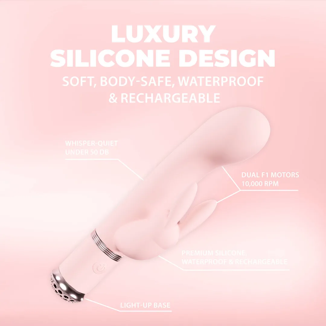 De Belle van Loveline International, Paris Collection is een konijnen vibrator met een verlichte basis die van kleur verandert bij elke stand. Met een geluidsniveau van onder de 50 dB zorgt het voor een discrete maar krachtige ervaring. Met tot 55 minuten gebruik op een volle lading is Belle gemaakt van lichaamsveilige silicone en is het waterproof, wat veelzijdig genot biedt. De nieuwe generatie F1 motoren bereiken tot 10.000 rpm voor op maat gemaakte stimulatie. Alle Loveline producten worden geleverd met een garantie van 1 jaar.