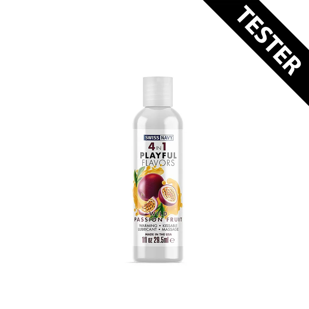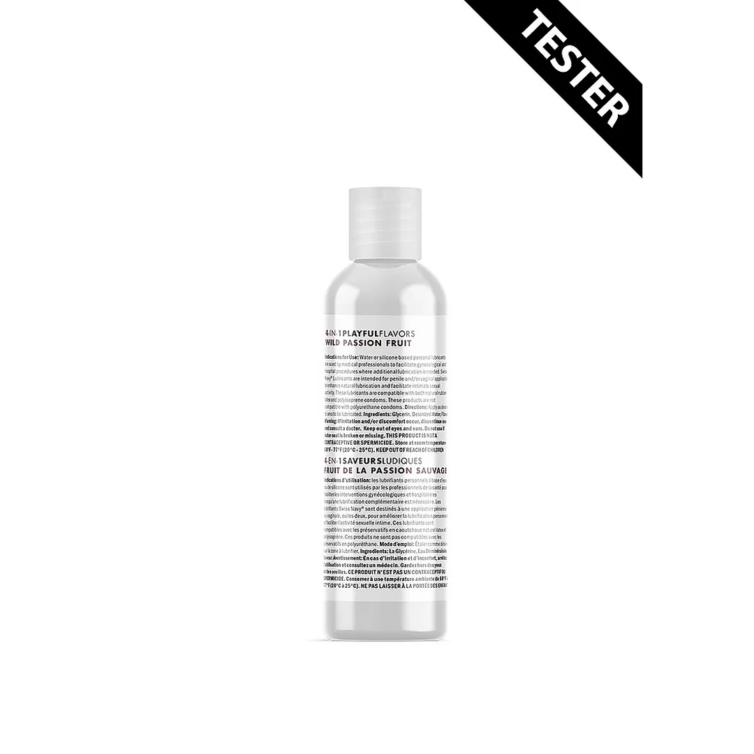 Onze Swiss Navy® Flavors smaken zo echt dat ze te goed lijken om glijmiddelen te zijn. We hebben een Fortune 500 voedingsbedrijf ingeschakeld om onze smaken te formuleren, zodat Swiss Navy® Flavors echt smaken zoals hun naam. Alle smaken zijn vrij van parabenen, suikervrij en plakken niet. 4-in-1 Speelse Smaken beloven speelse genot in al zijn vormen! Wild Passion Fruit levert de exotische, zoete smaak en pittige geur van verse passievrucht om je zintuigen - en je smaakpapillen - te prikkelen! Breng royaal aan om te genieten van een smaakvolle passievruchtervaring. Wrijf zachtjes of blaas op de vloeistof om een verleidelijke warmte vrij te geven. Of geniet van de gladde heerlijkheid wanneer het wordt toegevoegd aan een massage of gebruikt voor smering. Wild Passion Fruit 4-in-1 Speelse Smaken boeit en inspireert al je zintuigen! 1 Verwarmend Genot Liefde Voelt Warm. Warmte is comfortabel, ontspannend en ongelooflijk sensueel. Het toevoegen van het element warmte aan je sexy ontmoetingen creëert een natuurlijke “hete” sensatie-ervaring. 2 Eetbaar Plezier Liefde Smaakt Goed. Creëer heerlijke, kusbare avonturen op werkelijk verrukkelijke manieren. Betrek meer van je zintuigen met een speelse eetbare ervaring. 3 Glad Glijmiddel Liefde Duurt. Soms wil je dat het genot voor altijd aanhoudt, toch? Dit zijdezachte, sensuele glijmiddel ondersteunt de liefde met een langdurige formule. 4 Opwindende Massage Hou van Elke Aanraking. Elke streling en beweging prikkelt je zintuigen. Inspireer speels je massage-waardige momenten met een vloeibare, moeiteloze glijdende beweging. 1+2+3+4 = Oneindige Speelse Liefdesmogelijkheden! Speelse Smaken is glijmiddel voor jouw levensstijl. Van ondeugende voorspel tot surrealistische seks, 4-in-1 Speelse Smaken maakt het gemakkelijk om manieren te verkennen om meer spel aan je liefdesleven toe te voegen.