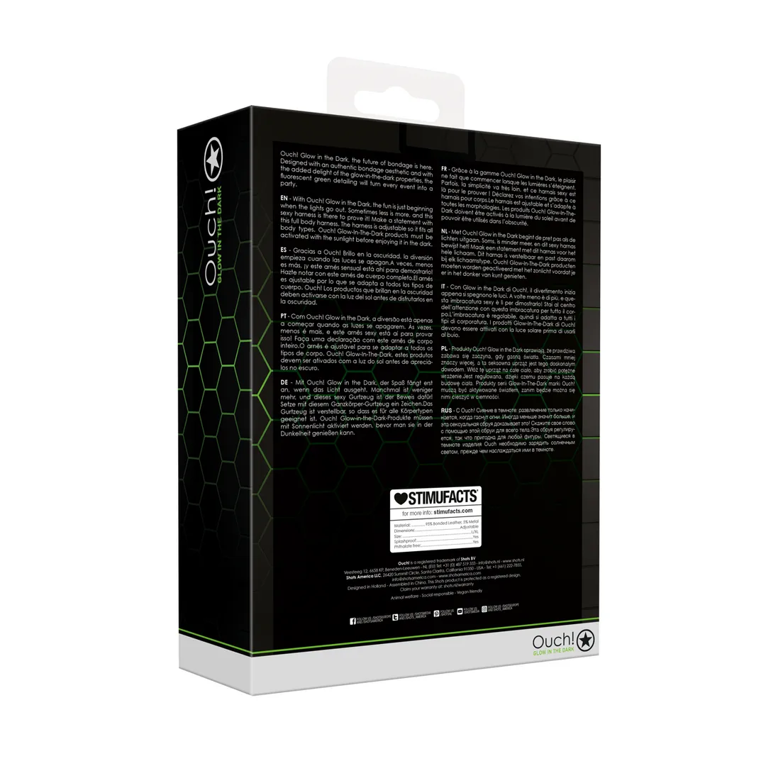 Ouch! Glow in the Dark, the future of bondage is here.Sometimes less is more, and this sexy harness is there to prove it!Designed with an authentic bondage aesthetic, but with the added delight of the glow-in-the-dark properties, the fluorescent green detailing will turn every event into a part.Ouch!?Glow-In-The-Dark?products must be activated with the sunlight before enjoying it in the dark.With Ouch! Glow in the Dark, the fun is just beginning when the lights go out./