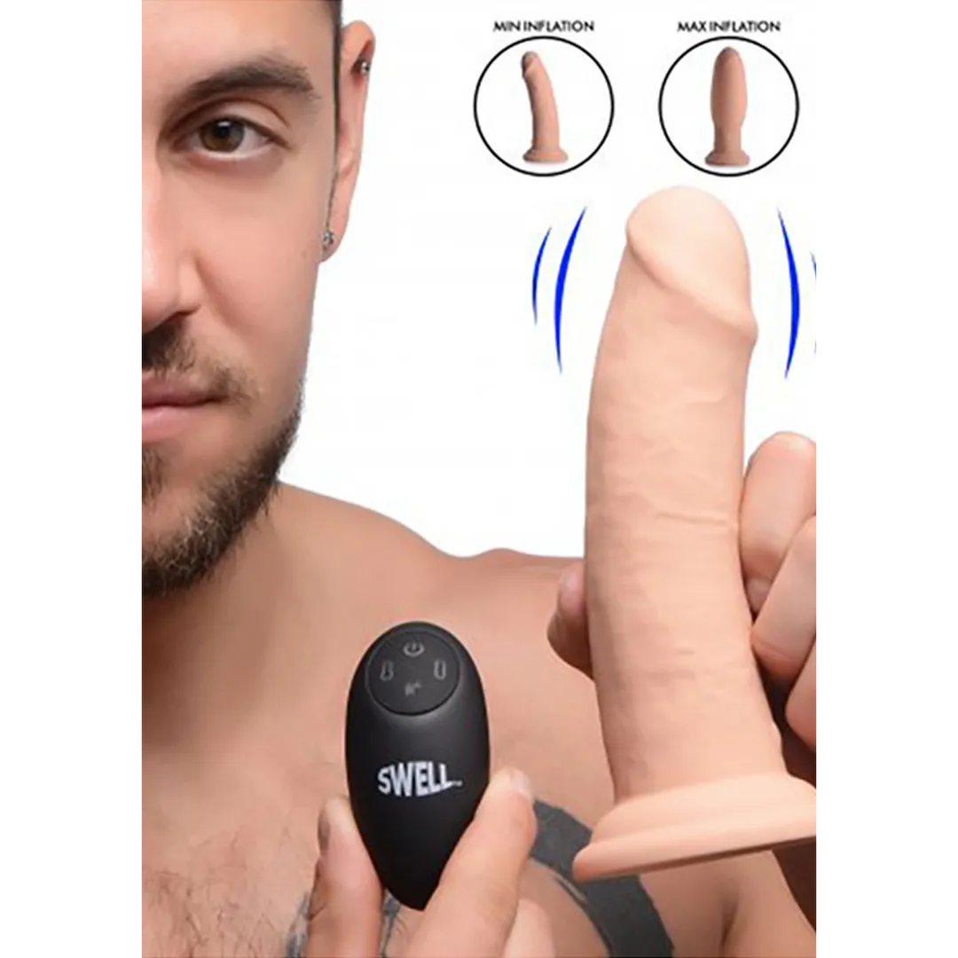 Vergroot je plezier met deze inflati ng en vibrerende dildo! Plaats deze dong en pomp het formaat op met een druk op de knop - de meegeleverde draadloze controller maakt het gemakkelijk om zowel de vibratie- als de inflatiefuncties te regelen, zodat je de perfecte combinatie van inflatie en buzz kunt vinden. Geniet van de zijdezachte siliconen en realistische details terwijl hij in je eigen tempo groter wordt! Combineer de zwellende eigenschap van deze dong met de krachtige vibratiemotoren! Kies uit 3 snelheden en 4 trillingspatronen om je nieuwe uitdijende dong te begeleiden. Blaas op, laat leeglopen en blader door alle vibratiefuncties met de meegeleverde draadloze controller en speel in je eigen tempo. Gemaakt van eersteklas zijdezachte siliconen die ook ftalaatvrij, latexvrij en lichaamsveilig is, zodat je zonder zorgen kunt inbrengen en groeien. Alleen compatibel met smeermiddelen op waterbasis. Speel met vertrouwen dankzij het spatwaterdichte ontwerp en maak na gebruik gemakkelijk schoon met warm water en milde zeep.Belangrijkste kenmerken Opblaasfunctie voor on-demand vulling: voel deze dong in je gaten groeien met een simpele druk op de knop! Geniet van een nieuwe wereld van vulling zonder het ongemakkelijke inbrengen van groter speelgoed Krachtige vibraties: geniet van 3 snelheden en 4 vibratiepatronen met of zonder de uitzettende schacht voor een extra buzz om je te vullen Luxe siliconenmateriaal: gemaakt van een pluche en fluweelachtig siliconenmateriaal dat ftalaat is -vrij, latexvrij en lichaamsveilig, zodat je met vertrouwen kunt spelen Oplaadbaar en waterdicht: oplaadbaar voor eindeloze vibraties en inflatie via de meegeleverde USB-kabel, en ontworpen met IPX6-waterdichtheid voor eenvoudig schoonmaken en douchevriendelijk plezier Harnas-compatibele zuignap: zuig deze schacht af op elk glad en plat oppervlak, of plaats deze opblaasbare dong op je strap-on harnas om jou of je geliefde te vullen
