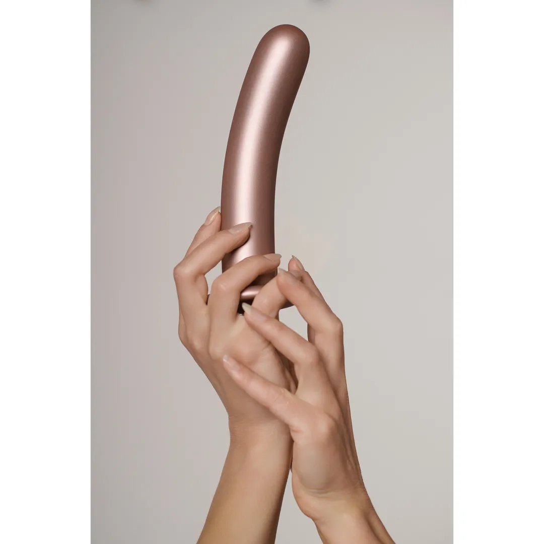 Smooth Silicone G-spot DildoStrong suction cup and beautiful metallic colorPremium silicone and liquid silicone dildosExtra soft and flexible feelPairs perfectly with the Ouch Strap-on Panties/
