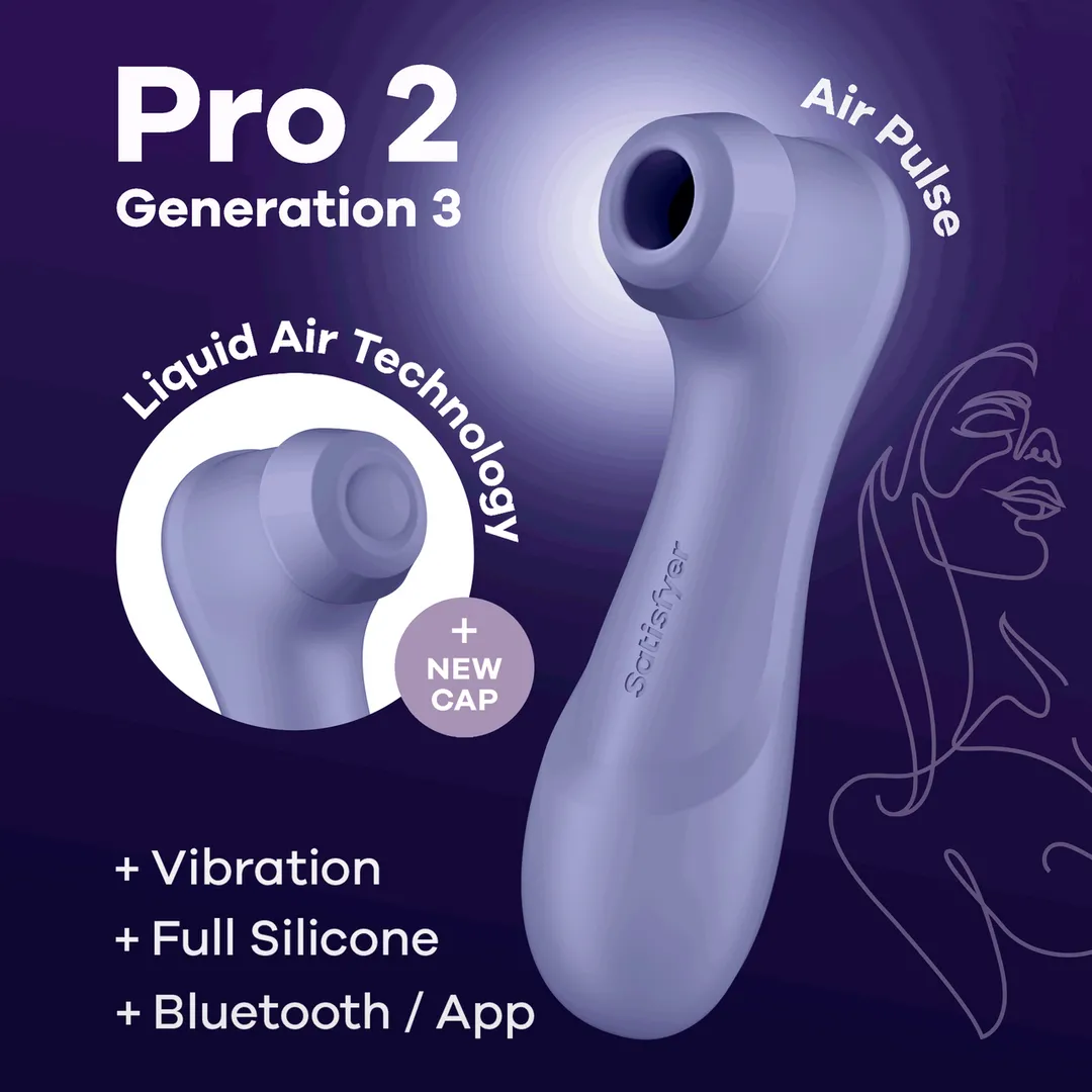 Maak je klaar voor een nieuwe golf van genot! De Pro 2 Generation 3 is de nieuwste editie van onze iconische Air Pulse pleaser, nu ook met vibratie en innovatieve Liquid Air Technology die een sensatie creëert als de sensuele golf van pulserend water. Met een gladde, zijden silicone afwerking en een verzwaarde kop voor ergonomisch gebruik, levert de Pro2 Gen3 de intense orgasmes die je kent en waar je van houdt. Maar nu word je overspoeld met het genot van een tikkende aanraking terwijl de luchtdrukgolven je clitoris prikkelen door een dunne hoes. Bluetooth-enabled, de Pro2Gen 3 Connect App koppelt met onze bekroonde, gratis Satisfyer Connect app, waarmee je de optie hebt om volledige controle te hebben over de krachtige motor en je genot echt te personaliseren. Natuurlijk heb je altijd de optie om zonder de app te gebruiken en te bedienen via de paneelknoppen voor 11 drukgolf- en 12 vibratieprogramma-opties. De Pro2 Gen 3 Connect App is gemaakt van lichaamsveilige silicone, oplaadbaar en heeft een IPX7 waterdichtheidsclassificatie. Geniet van de opwinding!