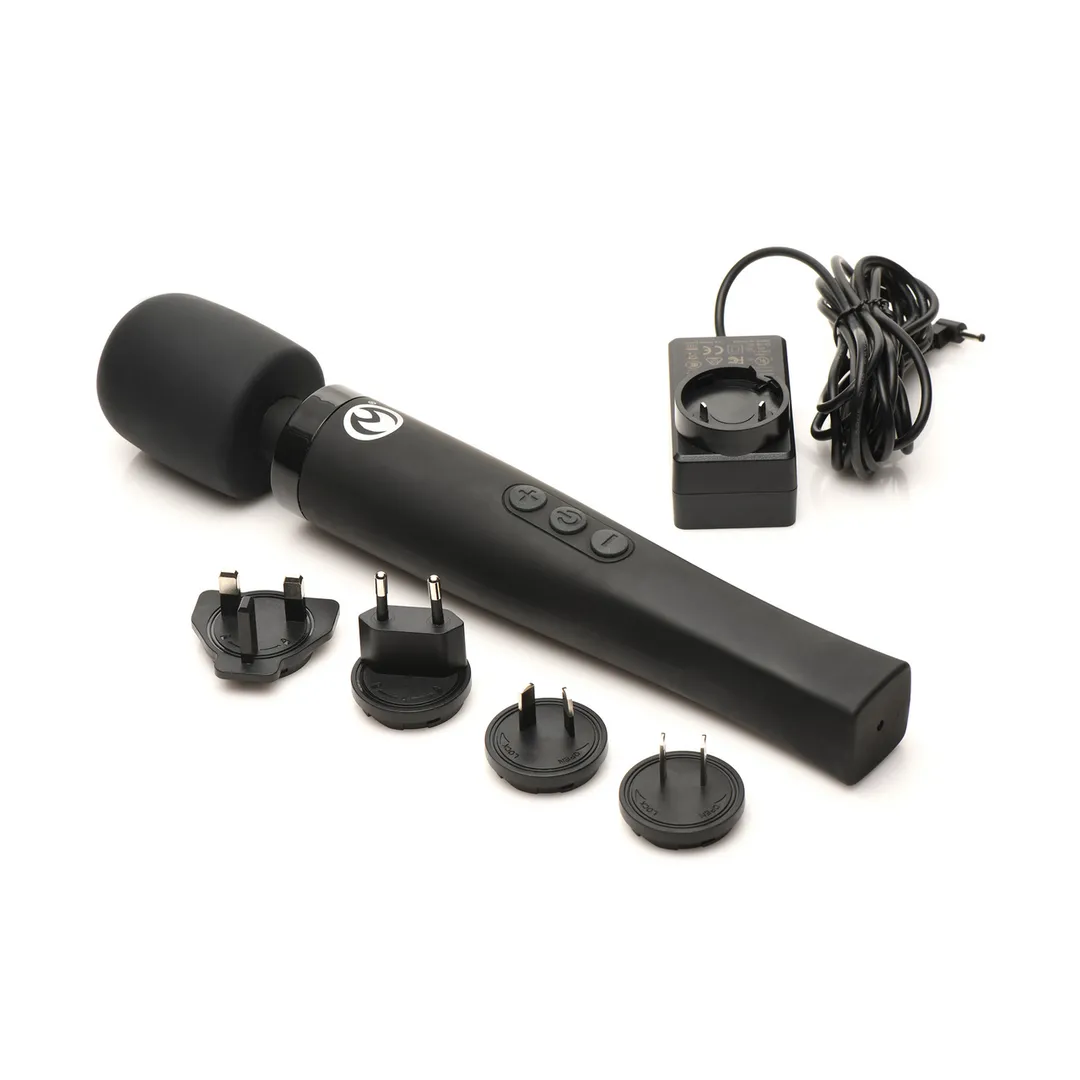 We hebben de beste Thunderstick tot nu toe gemaakt! Het slanke ontwerp heeft een lange handgreep om gemakkelijk die moeilijk bereikbare plekken te bereiken en een flexibele nek die buigt om elke hoek aan te passen. De zijdezachte siliconen kop voelt geweldig aan op blote huid en met kwaliteitsmateriaal zonder ftalaten heb je alleen het beste voor je lichaam! Geniet van 5 snelheden en 7 patronen van zoemende vibratie die je met een druk op de knop kunt bedienen. Gebruik het bedraad (aangesloten) of draadloos (stekker verwijderd). Met het apparaat losgekoppeld kun je veilig genieten van de IPX7 waterdichte functie en het in de douche gebruiken of zelfs tot 30 minuten onder water onderdompelen! Wil je meer kracht? Sluit de kabel aan, maar houd het speeltje uit de buurt van waterbronnen voor de veiligheid. Met het speeltje aangesloten begin je het op je nek en schouders te gebruiken. De rommelige vibratie laat de spanning los en je begint te ontspannen. Je beweegt het lager naar je billen, terwijl je ontspant en diep in die bilspieren komt. Langzaam beweeg je het naar je dijen. Op dit punt voel je de vibraties door je buik rommelen, en je brengt het dichterbij totdat het precies tussen je heupen zit en lager, tussen je dijen. Je begint zachtjes te kreunen van genot terwijl je jezelf opwindt. Je verwijdert je kleren, pakt wat glijmiddel en koppelt de massager los. Je drukt tussen je dijen, wrijft ertegenaan en kronkelt, en terwijl je de vibraties sterker voelt worden, worden je kreunen steeds luider totdat je uitroept met een laatste, gutturaal gekreun van extase! Om schoon te maken, was je het eenvoudig met warm water en milde zeep, spoel het af en spray het met een speelgoedreiniger. Sluit het aan wanneer het droog is om de batterij op te laden voor draadloos gebruik. Gebruik alleen op water gebaseerde glijmiddelen voor de beste resultaten. Het is tijd om op reis te gaan! Deze Thunderstick Pro Wand Massager is ontworpen voor internationale reizen! Deze kit wordt geleverd met 4 verschillende stekkeradapters voor de VS, VK, EU en AUS. Afmetingen: Totale lengte: 32,8 cm, Wandkop: 7,4 cm x 6,1 cm x 6,1 cm, Gewicht: 0,8 kg, Opmerking: Laat het speeltje niet nat worden terwijl het is aangesloten op een stopcontact.