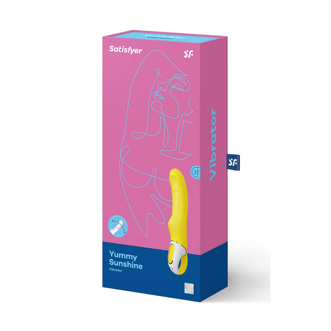 Yummy Sunshine is een aangenaam gebogen vibe die je verwent met zijn sensueel geribbelde structuur, schuine punt en diepe vibraties. In een parmantig geel met een glad aanvoelend oppervlak, zal het je intense climaxen bezorgen, waardoor je zon dagenlang schijnt!
