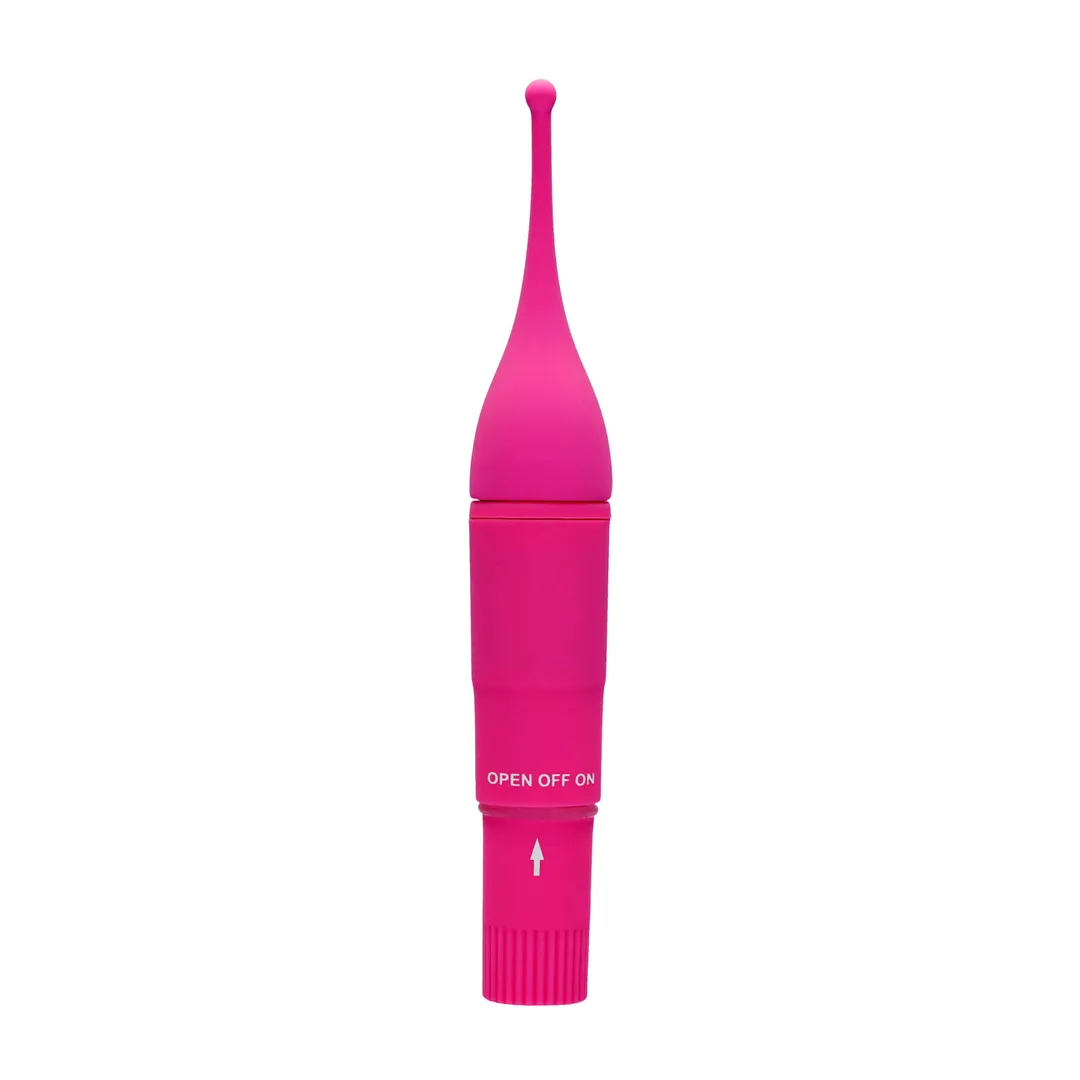 Hit the clit! Deze puntige afgeronde kop zal telkens weer op de juiste plek terechtkomen en stimuleren waar het er echt toe doet. Deze clitorale kietelaar kan tot duizelingwekkende 15.000 omw/min maken bij minder dan 60 dB. Hij is gemaakt van hoogwaardig ABS en heeft een totale lengte van 16 cm (6.3?) met een maximale breedte van 2.5cm (0.9?). Dit speeltje heeft een AA-batterij nodig (niet inbegrepen), voor meer dan 1 uur plezier. Verkrijgbaar in zwart, roze en paars.